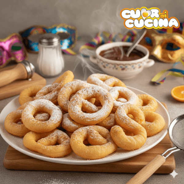 Le Cuddureddi sono il cuore dolce del Carnevale siciliano. Queste frittelle non sono semplici dolci, ma piccoli capolavori di croccantezza fuori e morbidezza dentro. La loro forma a "e" è inconfondibile e il profumo di mandarinetto e cannella le rende irresistibili. Perfette per una festa in famiglia o per colmare di dolcezza i pomeriggi d'inverno.
